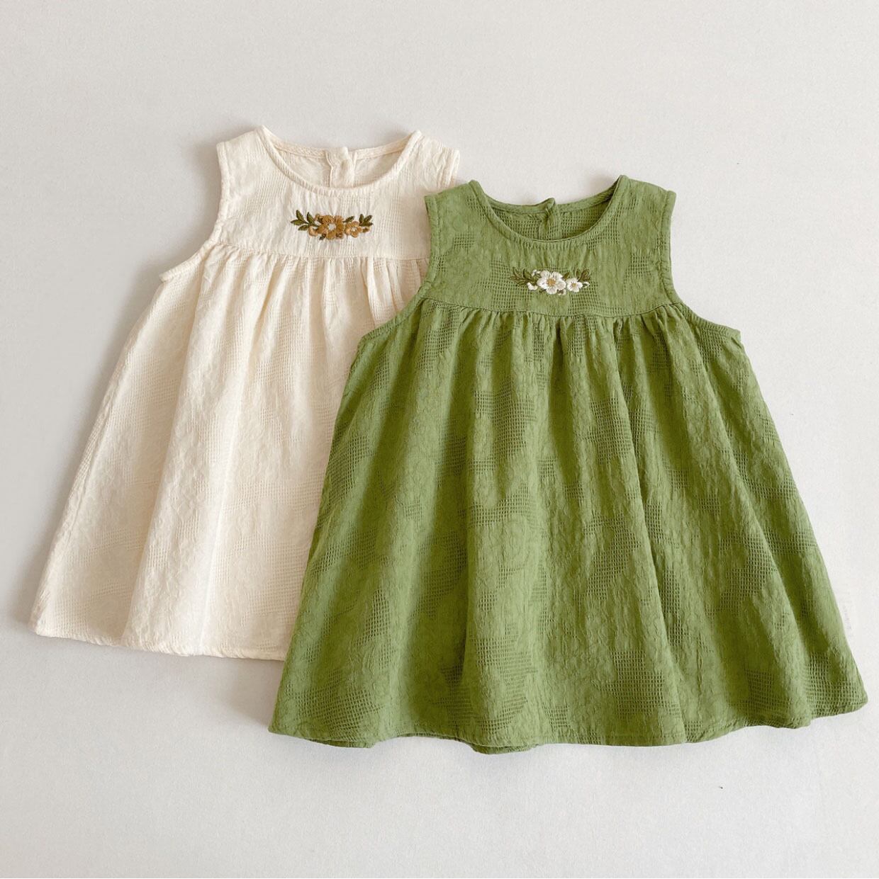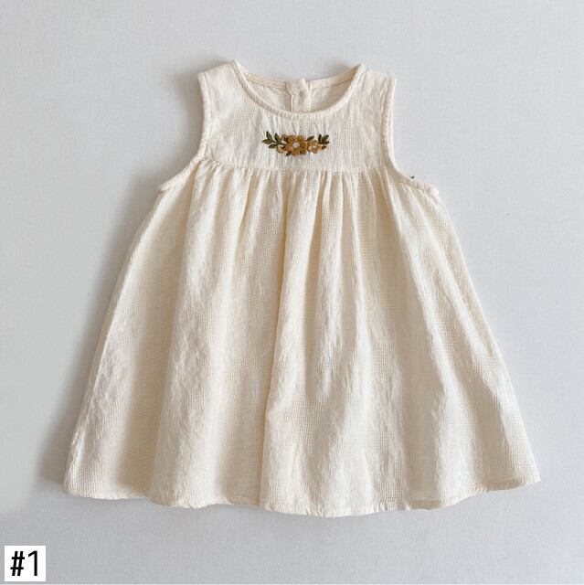 夏女赤ちゃんドレス刺繍ノースリーブフリル幼児女子ドレス子供綿ドレス女赤ちゃん コットン ラッフル サマー 夏物 キッズ