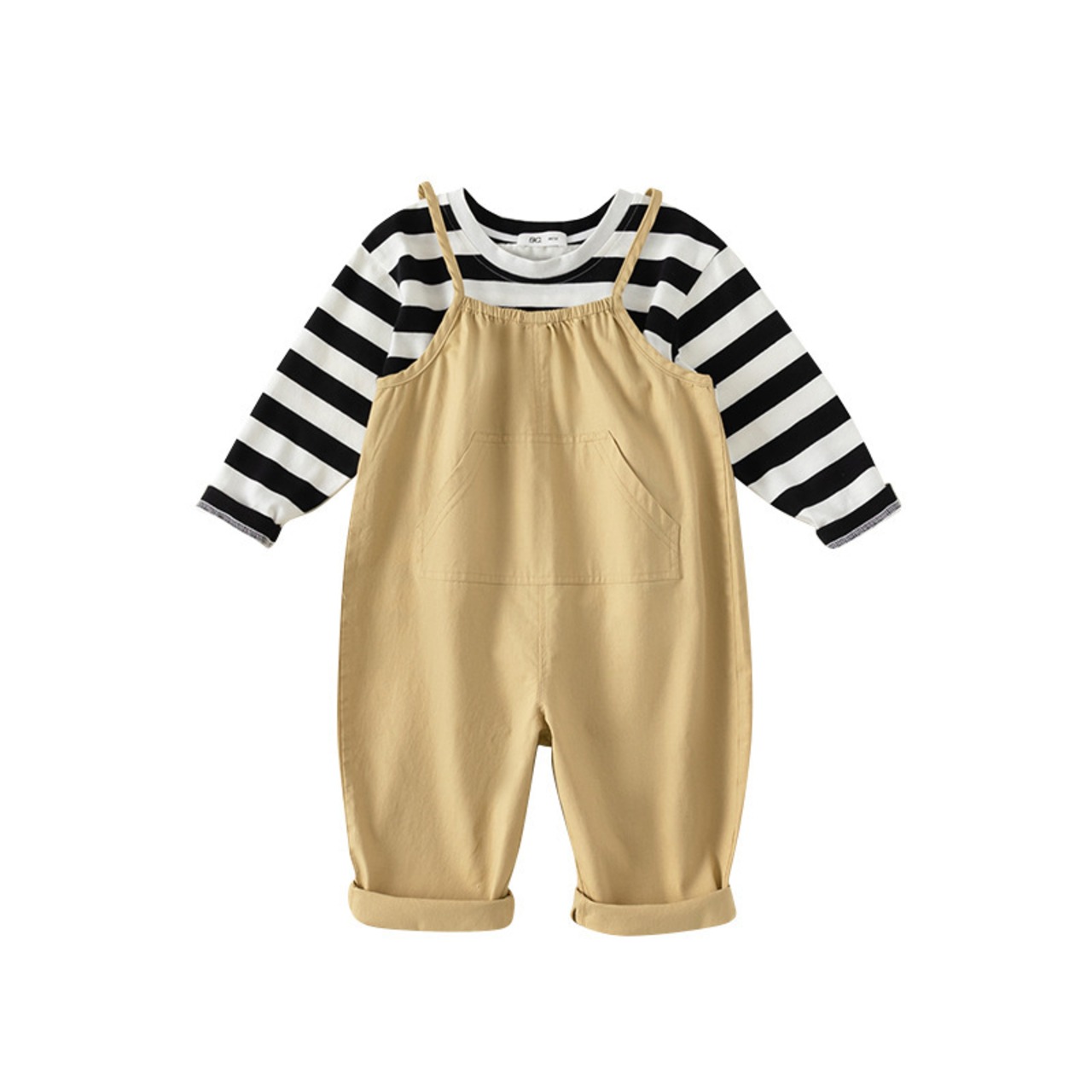 2 個ベビー男子女子セット無地ストライプ Tシャツ + ルーズオーバーオール衣装子供服春 スプリング 春物 ソリッドカラー
