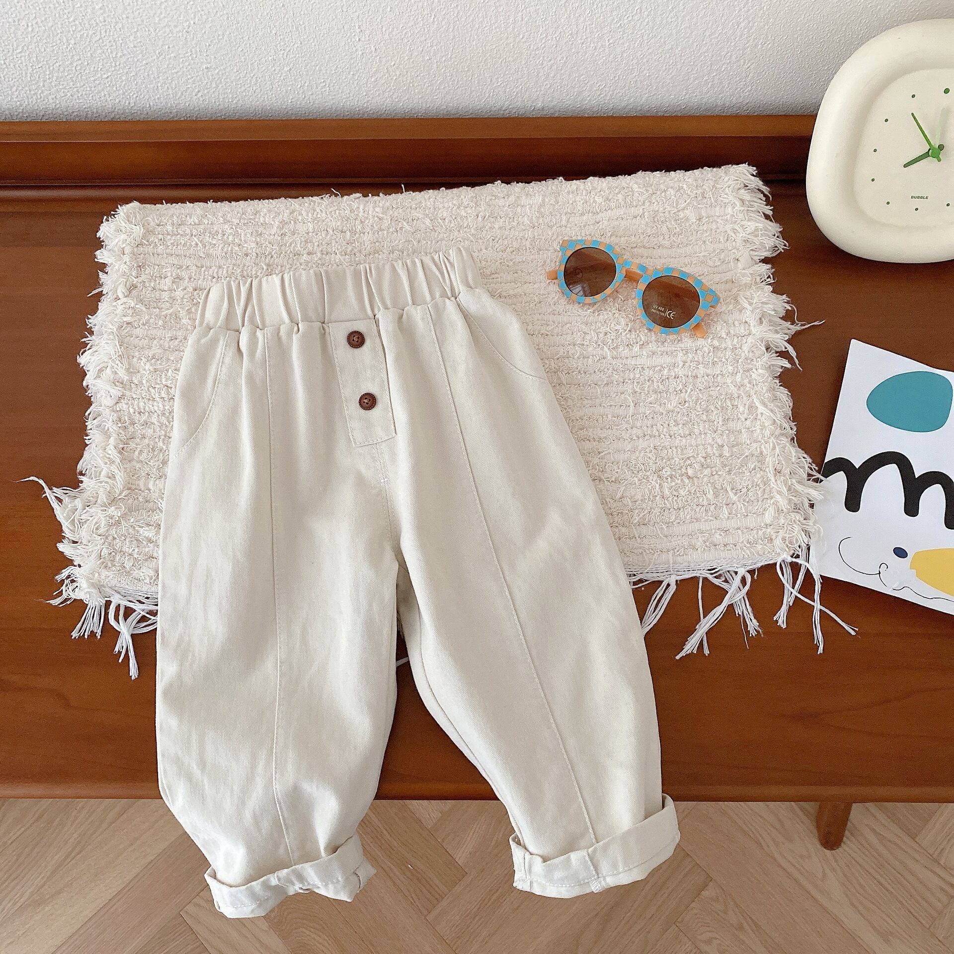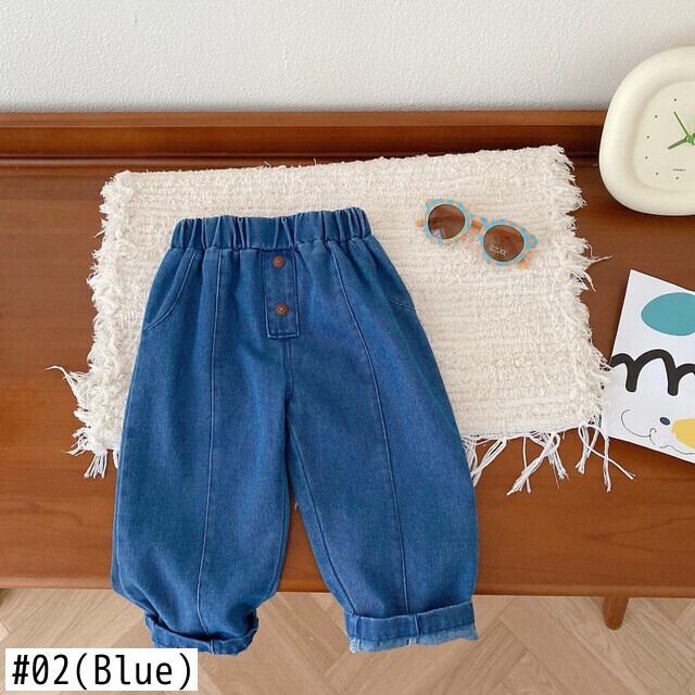 秋子供ジーンズ男子ベビーシンプルパンツ女子幼児綿ルーズオールマッチズボン幼児 コットン オータム 秋物 ソリッドカラー