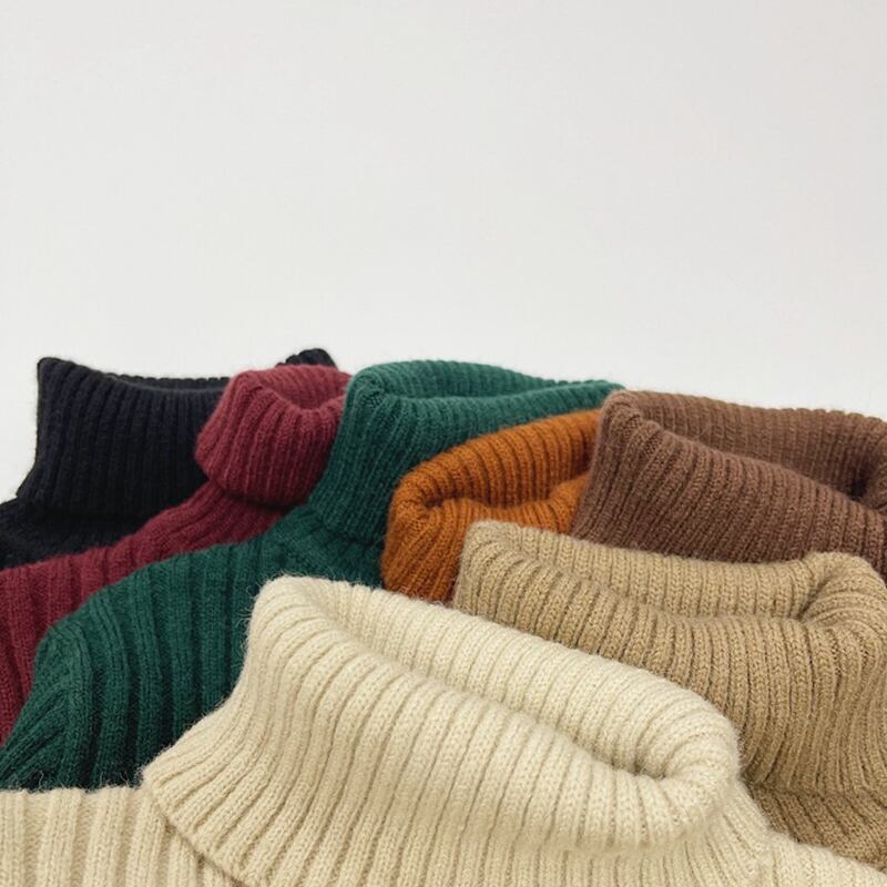 秋冬キッズセーター暖かいガールズセーターボーイズプルオーバータートルネックニット子供服 オータム 秋物 ウィンター 冬物 ソリッドカラー