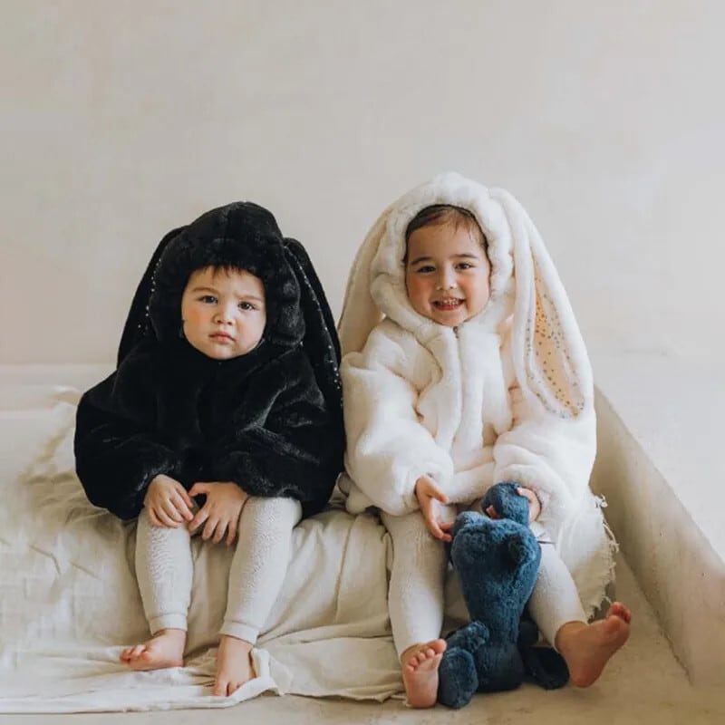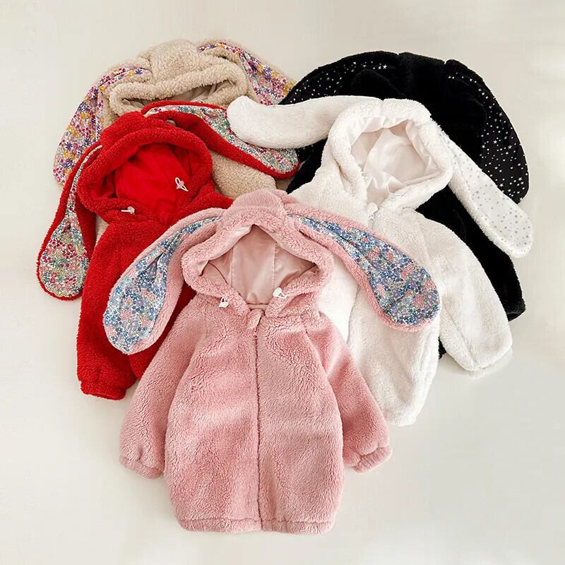 フリース厚い子供コート 1-7Y 幼児ベビー暖かいウサギフード付きコート子供ロング生き抜くベビーガールズボーイズ冬ジャケット ウィンター 冬物 キッズ