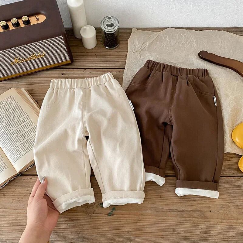 冬ベビーパンツ女子ズボン毛皮裏地男子パンツ暖かい豪華衣装 ウィンター 冬物 ソリッドカラー