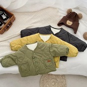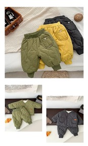 秋冬子供ホームコートスーツ少年少女子供レトロ厚み暖かい綿トップス + パンツ 2 個ベビージャケットセット コットン オータム 秋物 ウィンター 冬物 ソリッドカラー