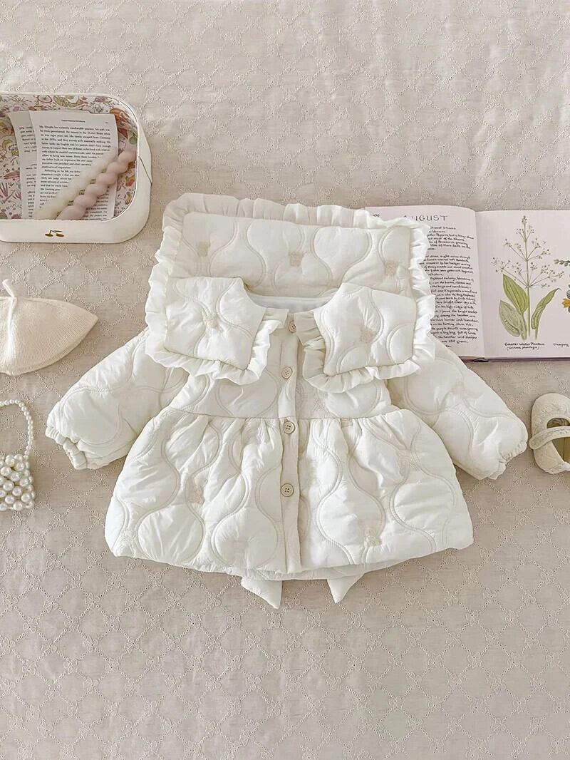 冬ベビーパーカービッグリボン女子毛皮コート幼児女子フリースジャケット ウィンター 冬物