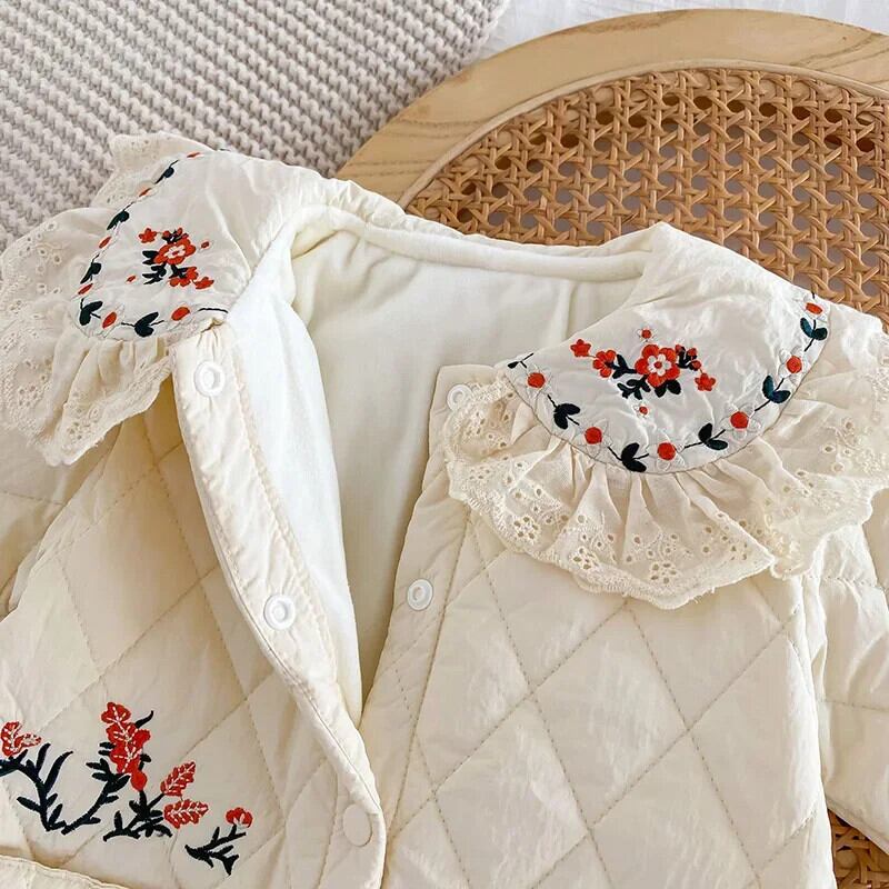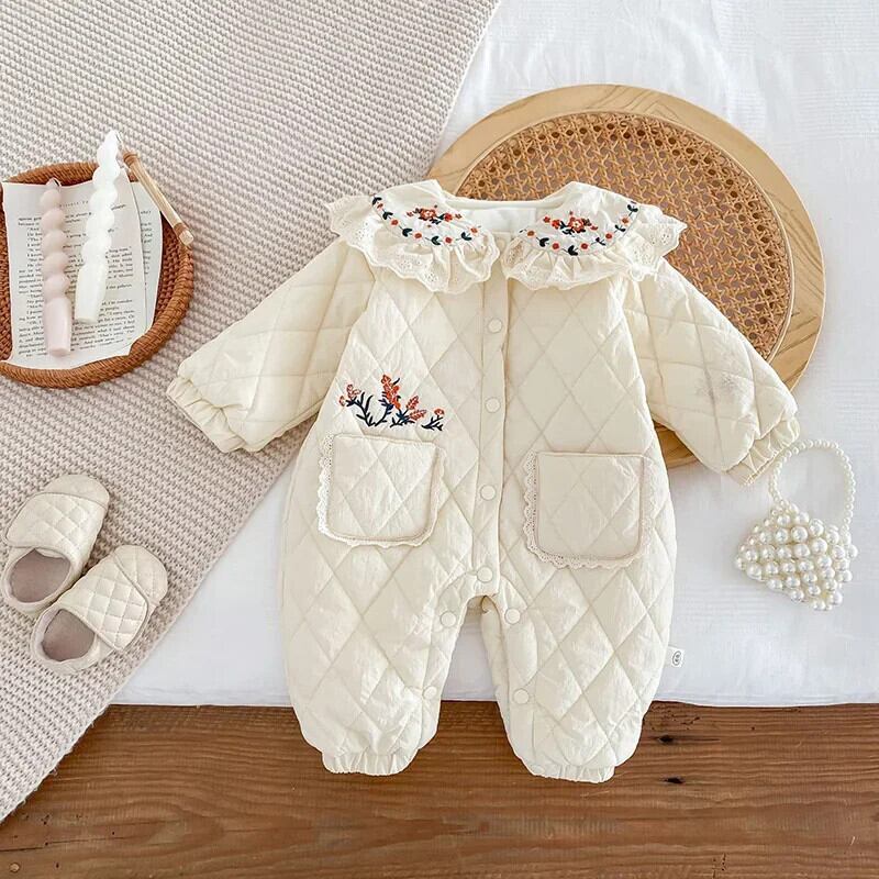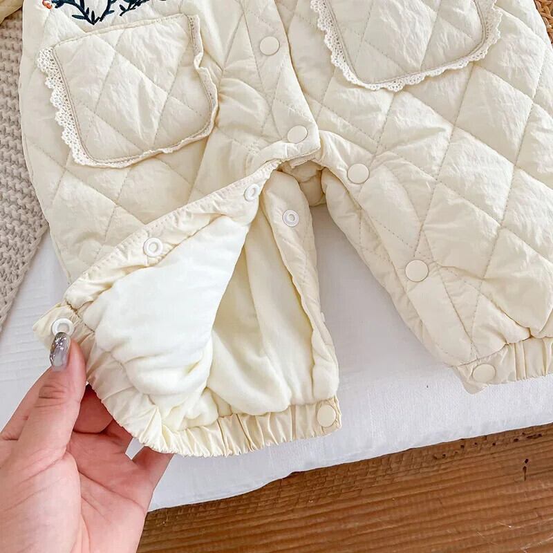 冬ベビーフリース裏地女子ロンパース刺繍幼児ジャンプスーツ ウィンター 冬物