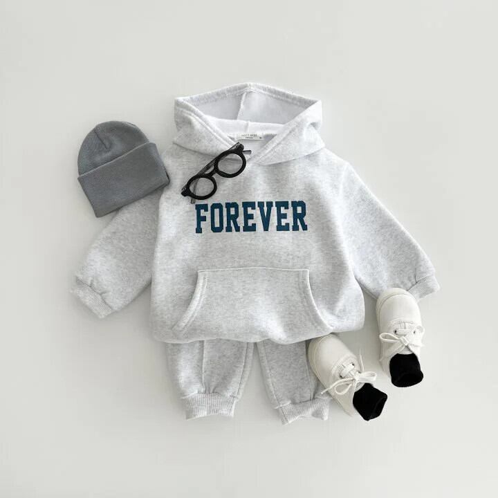 秋冬男子子供レターフリース厚いパーカーセット女子ベビー綿プラスベルベット暖かいトップストレーナー + パンツ 2 個 コットン オータム 秋物 ウィンター 冬物 ソリッドカラー