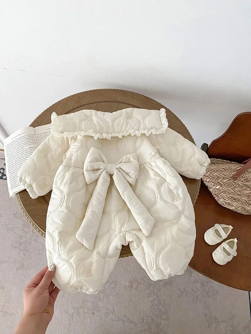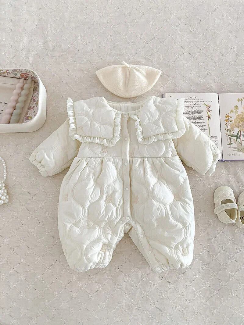 冬ベビーロンパース刺繍女子ジャンプスーツピーターパン襟幼児 ウィンター 冬物