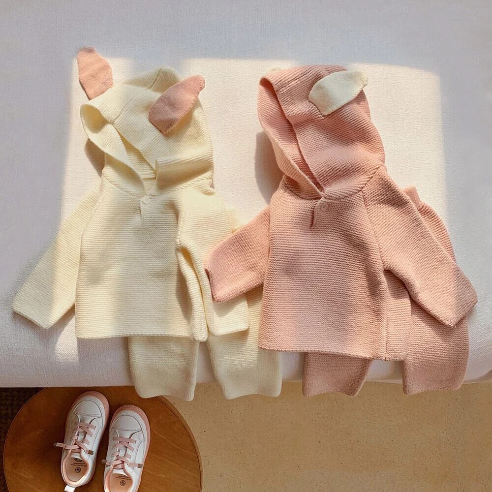 春女赤ちゃんセット暖かいニット長袖プルオーバーセータートップス + パンツ生まれた女赤ちゃん衣装 ロング スプリング 春物