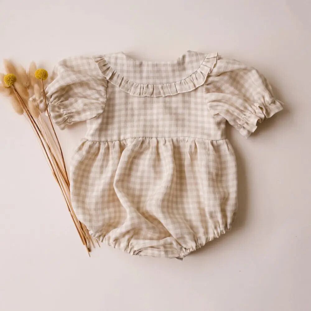 夏インスタント女赤ちゃんジャンプスーツリネンコットン女赤ちゃんワンピース遊び着 サマー 夏物