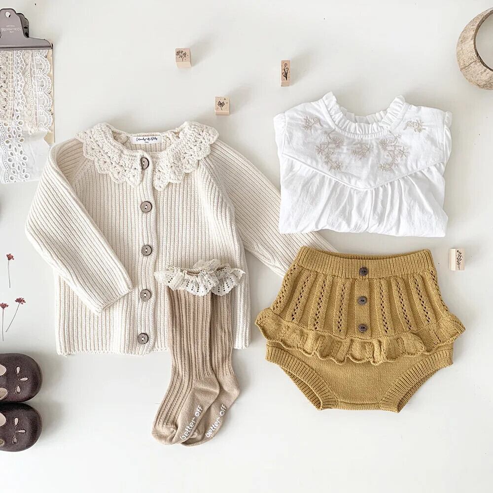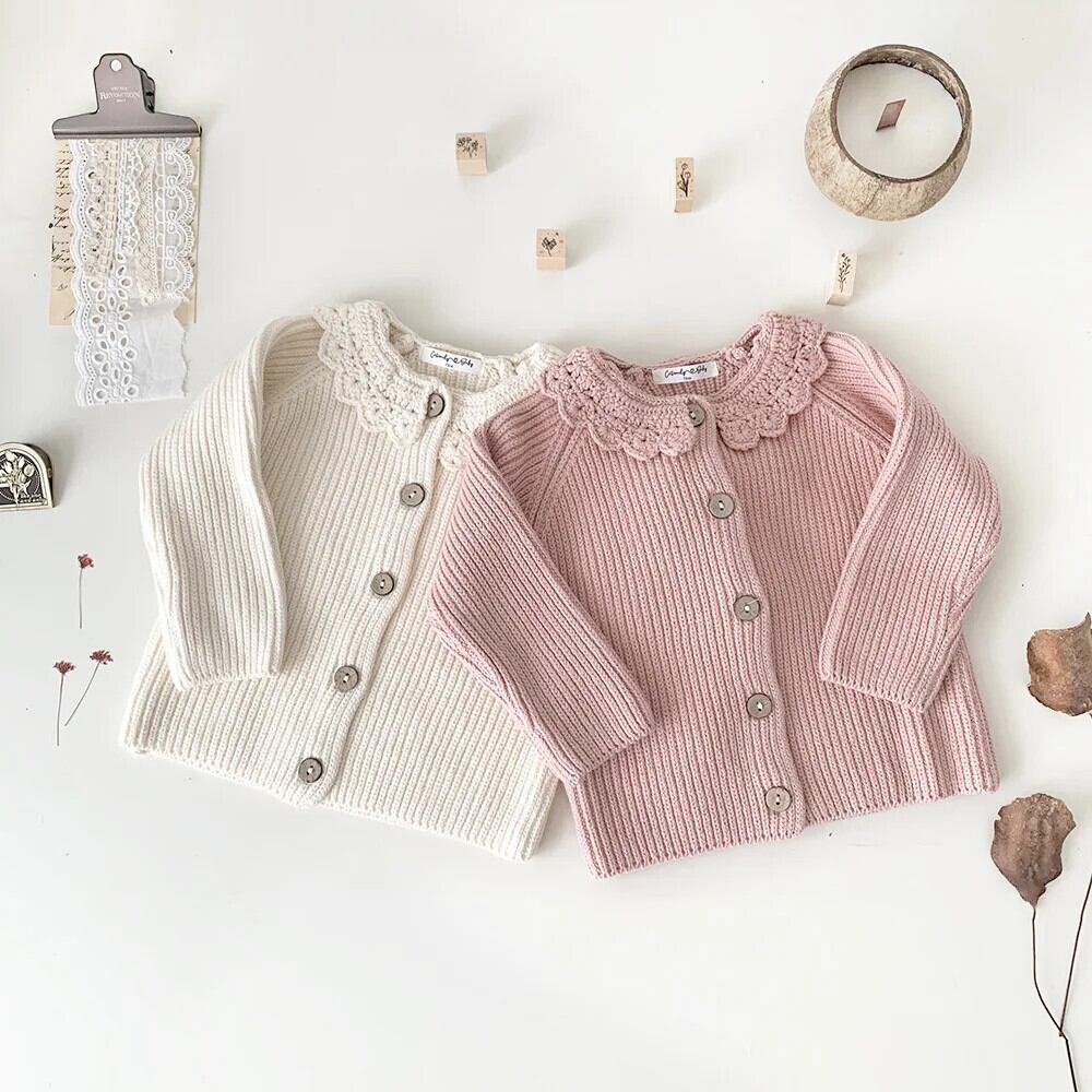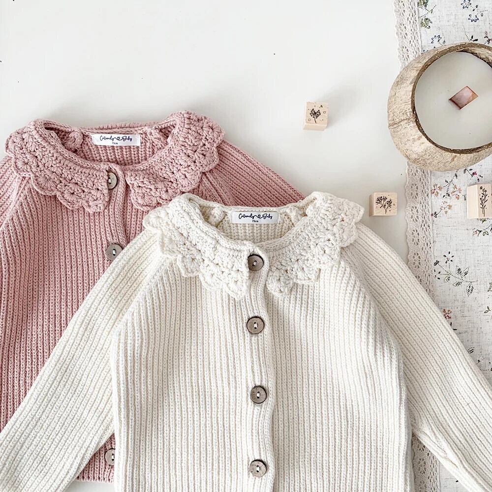 ベビーセーター厚みある幼児女子カーディガンフリル襟幼児ニット衣装