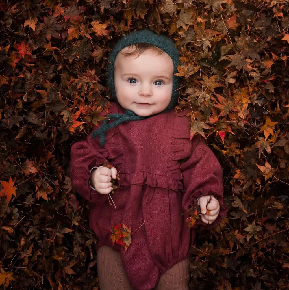 春女赤ちゃんボディスーツ リネン コットン グリーン生まれ女赤ちゃん スプリング 春物