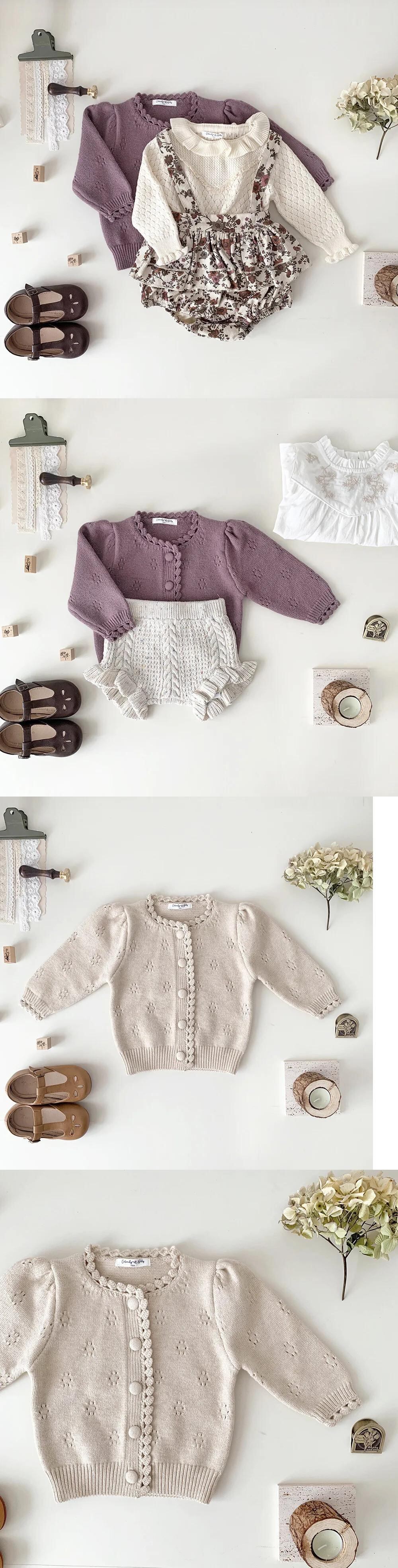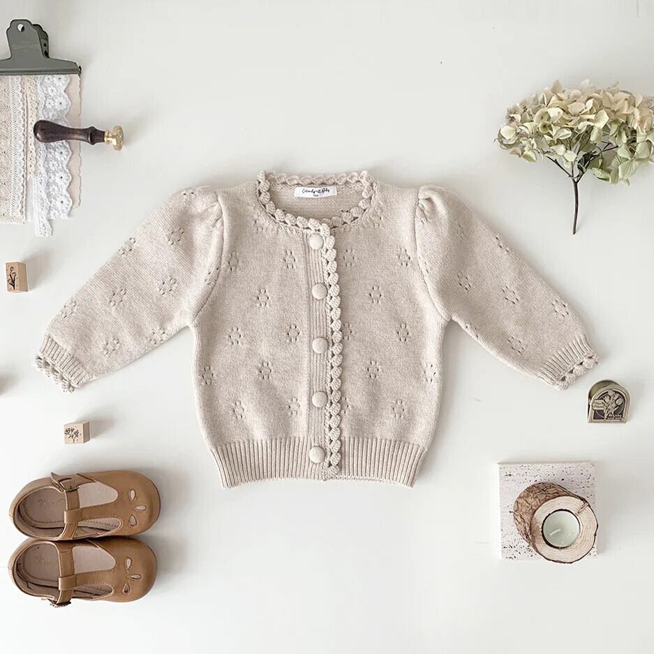 ベビーセーター女子ニット手作り襟厚みあるカーディガン
