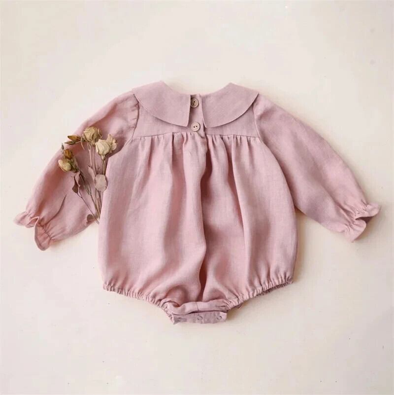 生まれポグラフィ小道具リネンコットン女赤ちゃんロンパース春夏 スプリング 春物