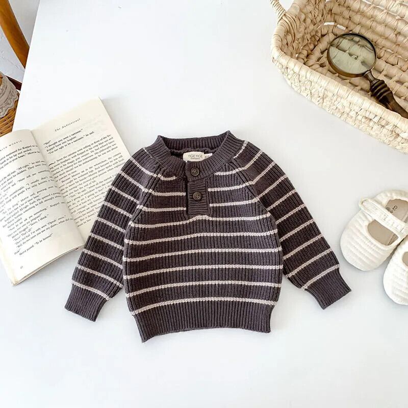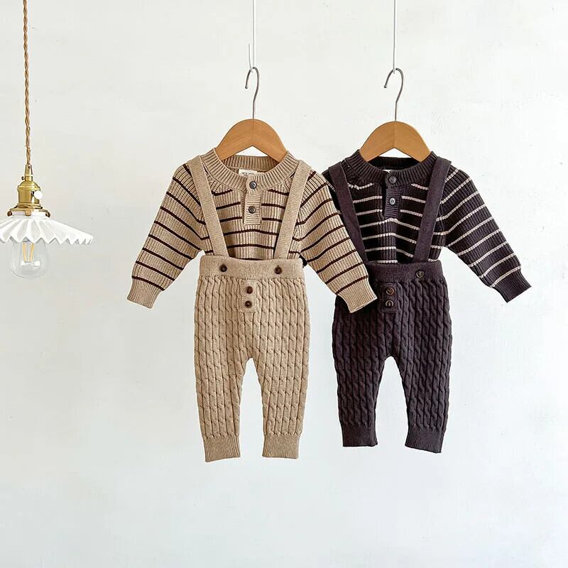 秋ベビースーツニットオーバーオールとストライプセーター幼児 オータム 秋物