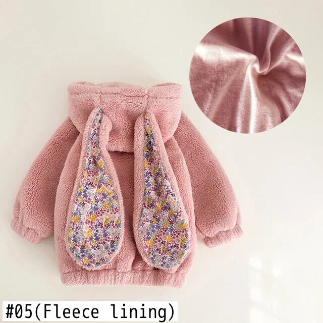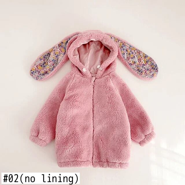 春女赤ちゃんジャケット 1-7Y 幼児赤ちゃんウサギフード付きフリースコート子供女子ロング生き抜く スプリング 春物