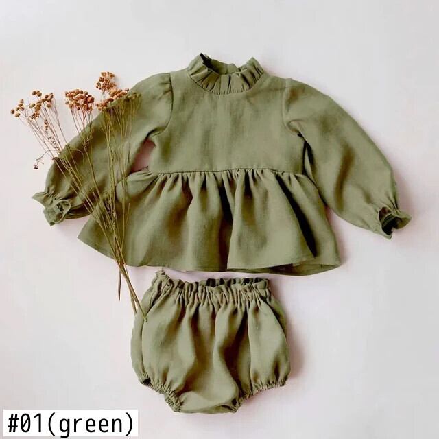 春赤ちゃん女子セット夏リネンコットン女子ブラウス + ボトムショーツ 0-2 Y スプリング 春物 サマー 夏物 ブルマー
