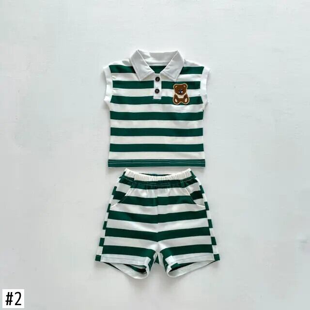 夏赤ちゃん男子セット Stiped コットン幼児男子スポーツ Tシャツ + ショーツ幼児ベビー サマー 夏物 ブルマー