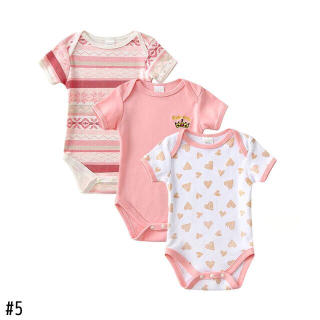 3 個女赤ちゃんボディスーツ夏半袖生まれ女子遊び着男子セット ショート ハーフスリーブ サマー 夏物